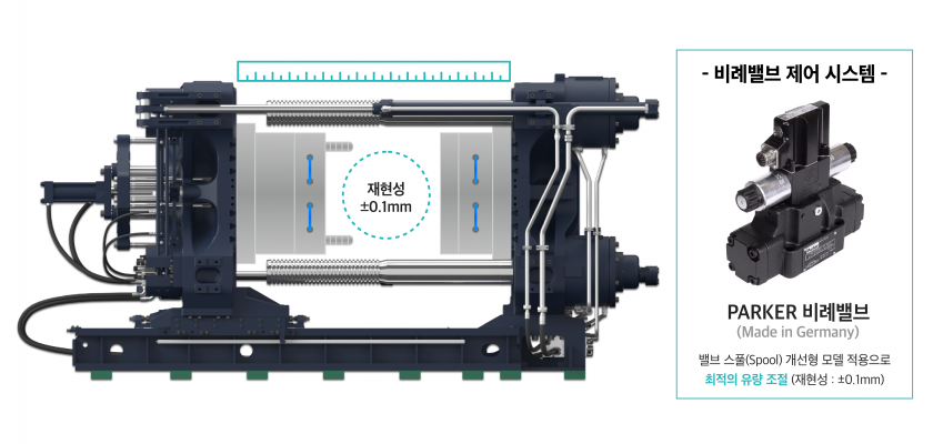 450톤부터 4300톤까지의 형체력을 제공하는 투플레이튼 절전형 하이브리드 사출성형기